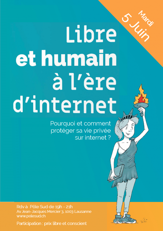 Pour ce dernier café décroissance avant la pause estivale, le ROC Vaud vous propose une soirée d’information et de débat avec les auteures du livre « Libre et humain à l’ère d’internet ». Pendant deux ans Amélie Delalain et Héloïse Pierre ont interviewé de nombreux spécialiste d’internet et des libertés ainsi que des créateurs et créatrices de solutions alternatives. Le but de leur ouvrage : inviter au questionnement et à la prise de position, dès aujourd’hui, pour choisir d’aller vers un monde plus libre et plus humain.