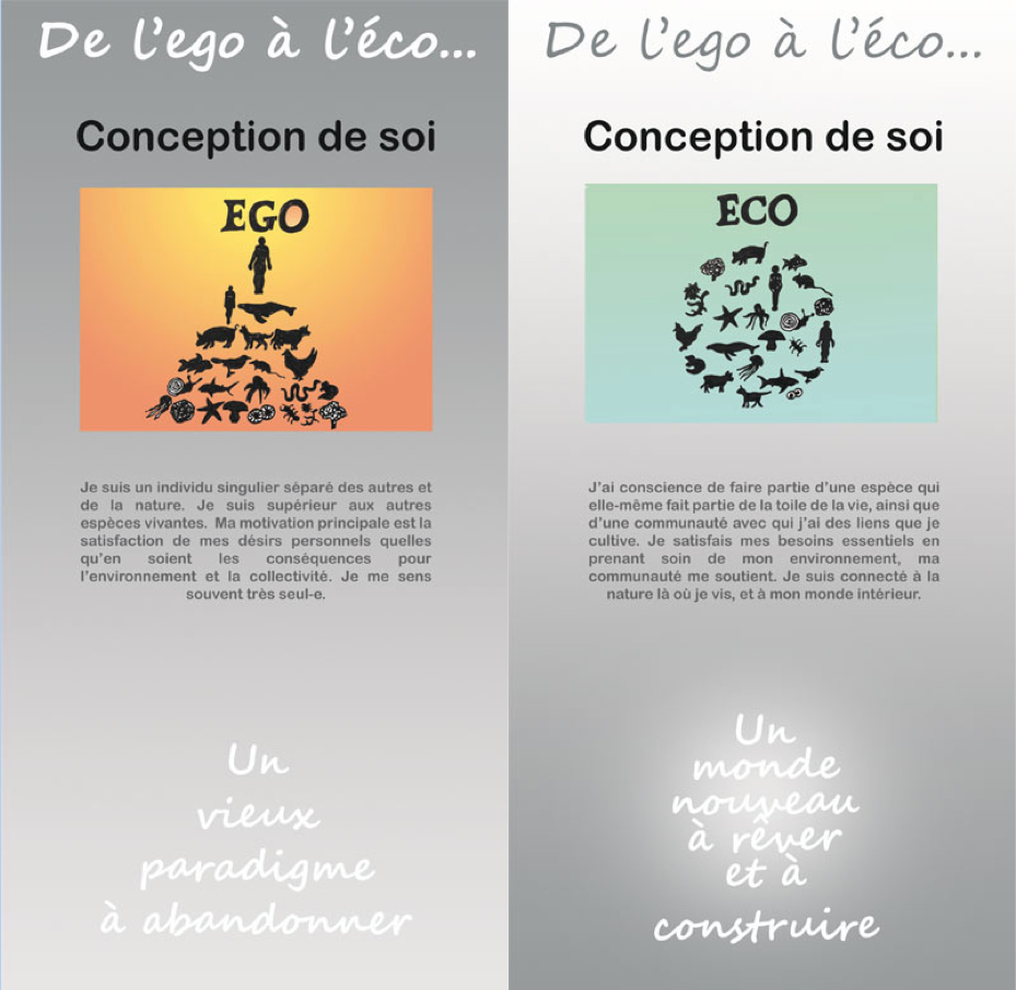 12 thèmes, 26 panneaux entre Un vieux paradigme à abandonner et Un nouveau monde à rêver et à construire. Cette exposition nous invite à questionner nos croyances, décoloniser notre imaginaire et nous engager pour une transition intérieure vers une société plus écologique et solidaire.